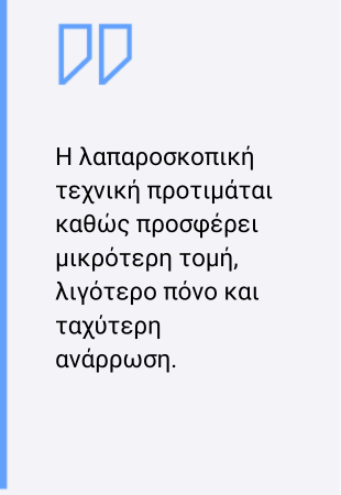 Η λαπαροσκοπική τεχνική προτιμάται καθώς προσφέρει μικρότερη τομή, λιγότερο πόνο και ταχύτερη ανάρρωση.